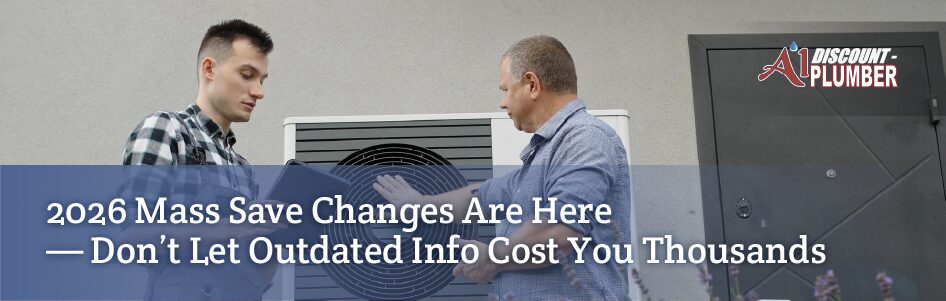 At A1 Discount Plumber, we help Metro West homeowners stay ahead of these policy pivots. Whether you’re replacing an aging furnace or exploring heat pump options, here’s what you need to know about the new rebate rules, refrigerant bans, and sizing requirements now in effect across Massachusetts.